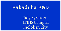 Dear friends and schoolmates, We are happy to invite you to the LRDHS alumni reunion 2006. your host, LRDHS/LNHS Class 1981